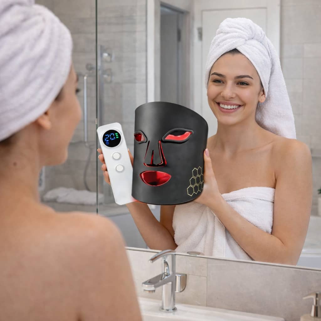 Voici le Masque Visage LED 7 Couleurs Sans Fil, une technologie utilisée en instituts esthétiques, désormais chez vous.